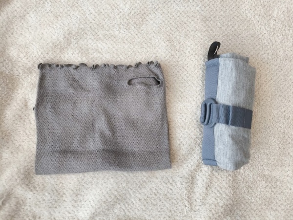 左がシルクネックウォーマー、右が無印のネッククッション。