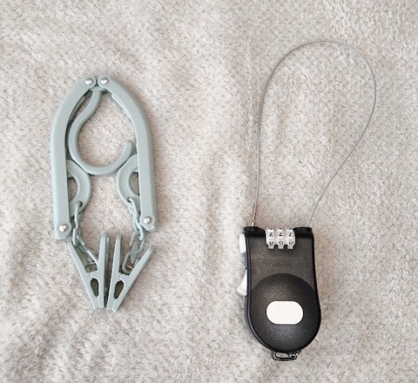ひとり旅は荷物から離れられないんだけど、空港や乗り物の中など比較的安全な場所では、このワイヤー巻取り式ダイヤルロックが役に立ちます。