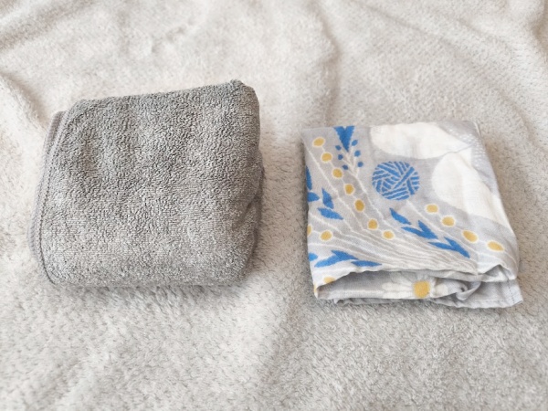 右が手ぬぐい、左はマイクロファイバーのバスタオル。