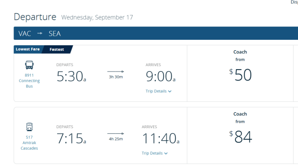 さて、Amtrak列車に乗ってシアトルに向かいます。