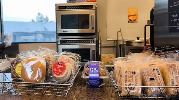 車内販売コーナー。スターバックスコーヒーだけでなく、ジュースやお酒、スープも揃っており、軽食類もなかなか充実しています。