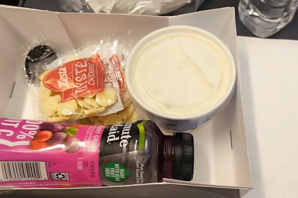 時差のせいであまり食欲がなく、軽めにということでIvar’sのクラムチャウダーとクランベリー&グレープジュースを注文。