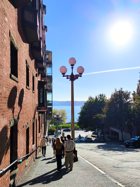 私は北西側の坂道からマーケットに向かったのですが、Victor Steinbrueck Park越しのエリオット湾の眺めが格別でした。
