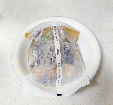 封を開けて、紙包装の中身を耐熱容器にうつしてラップをせずにレンジで5分。