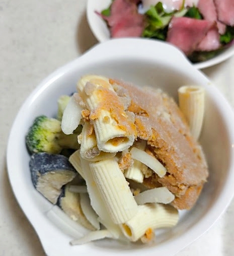 冷凍野菜を再加熱した時の食感が苦手なんですよね…。野菜が課題です。