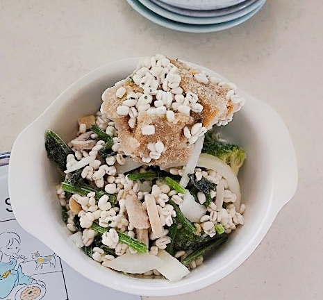 お肉はやわらかいし、もち麦のぷちぷち感はよかった。