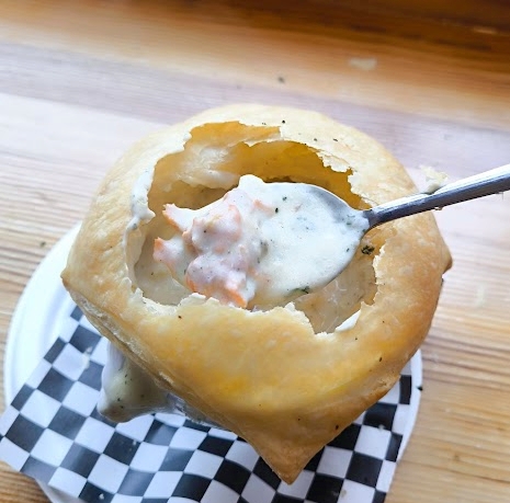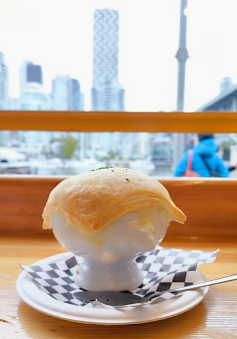 サーモンチャウダーを食べさせてくれるお店はエリア内にいくつかありますが、このお店のさっくさくのポットパイを食べたくて、迷わずまっすぐ向かいました!