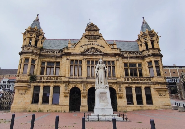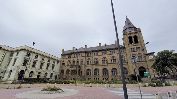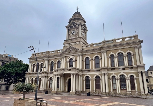 1820年の入植者の上陸を記念して建てられ1922年に完成、ポートエリザベスのランドマーク。時計の時刻はぜんぜんあってない。