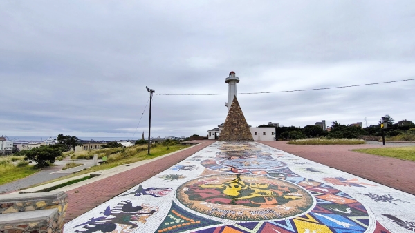 ポートエリザベスの地名の由来にもなった、ドンキン卿の奥さんエリザベスの死を記念して建てられたピラミッド。と、灯台。その向こうに海。乗ってきた船も見えます。